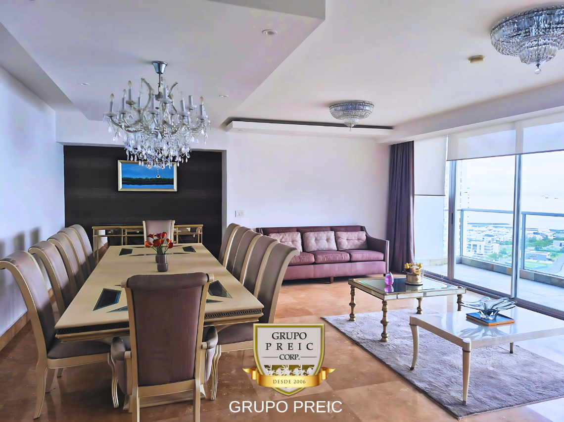 3 REC. | 3.5 BAÑOS | 2 PARKING | 218 m² Vive con toda la ciudad a tus pies. Alquila este amplio apartamento amueblado en Costa del Este, increíblemente cerca del Town Center. Relájate en tu balcón con vistas panorámicas o aprovecha las exclusivas amenidades como el spa y el sky lounge. ¡Listo para mudarse el 01 de julio!