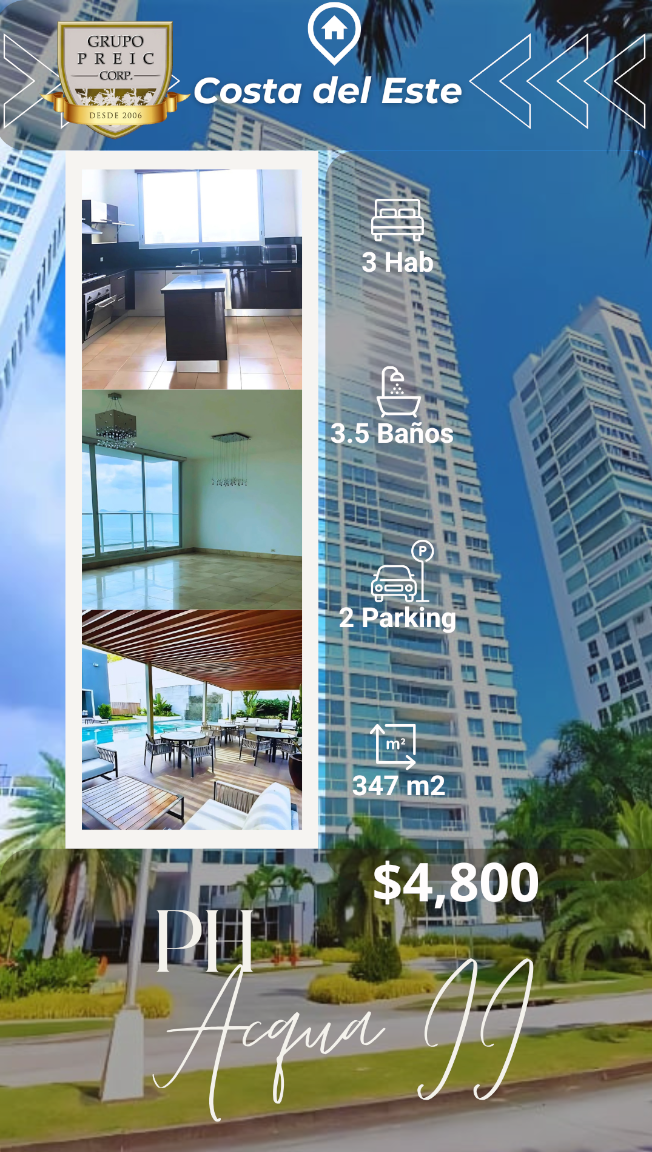 3 REC. | 3.5 BAÑOS | 2 PARKING | 217 m² Se alquila espectacular PH amueblado en el exclusivo The Regent, Costa del Este. Disfruta de una vida de lujo con vistas al mar desde tu balcón y acceso a amenidades de primer nivel como cine VIP, múltiples piscinas y el gimnasio más completo de la zona. Ubicación inmejorable en el corazón de la zona empresarial, steps de restaurantes, bancos y colegios. ¡Una oportunidad única!