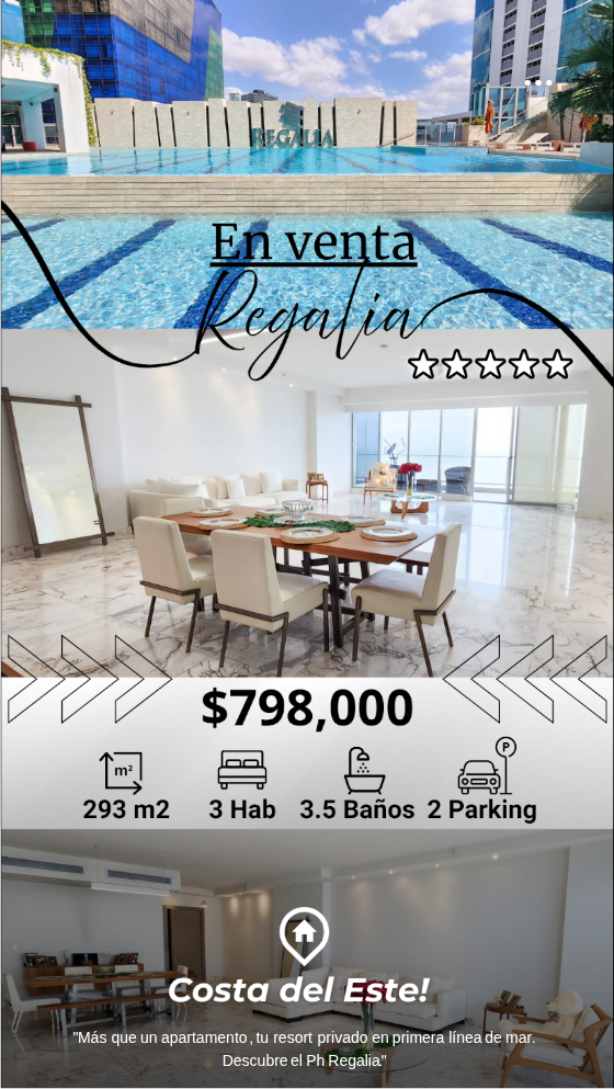 3 REC. | 3 BAÑOS | 2 PARKING | 172 m² Apartamento en PH con distribución ideal en uno de los entornos más valorados de Costa del Este. Perfecto para disfrutar de comodidad y estilo de vida privilegiado. Amenidades: Piscina, gimnasio, salón de fiestas, cancha de fútbol, parque infantil y seguridad 24/7.